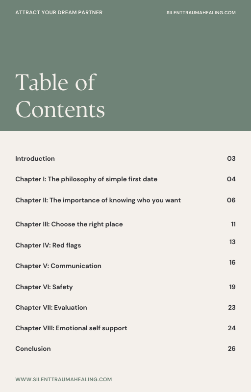 It's fully packed with all the information you need to be successful in dating; preparing for the date, choosing the right places, avoid the bad ones, self-inquiry to know who your perfect partner is.